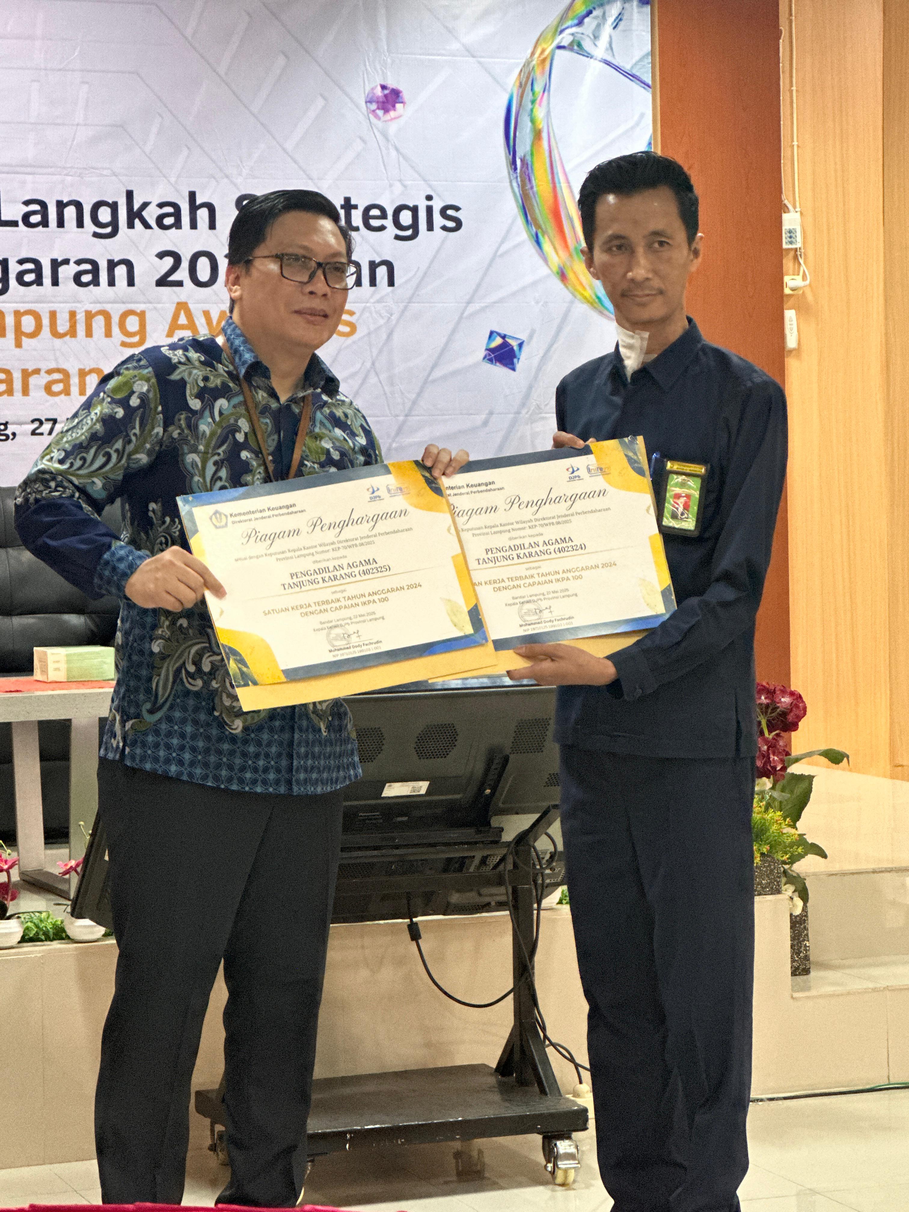 Pengadilan Agama Tanjungkarang berhasil meraih prestasi penghargaan dari Kanwil DJPb Provinsi Lampung