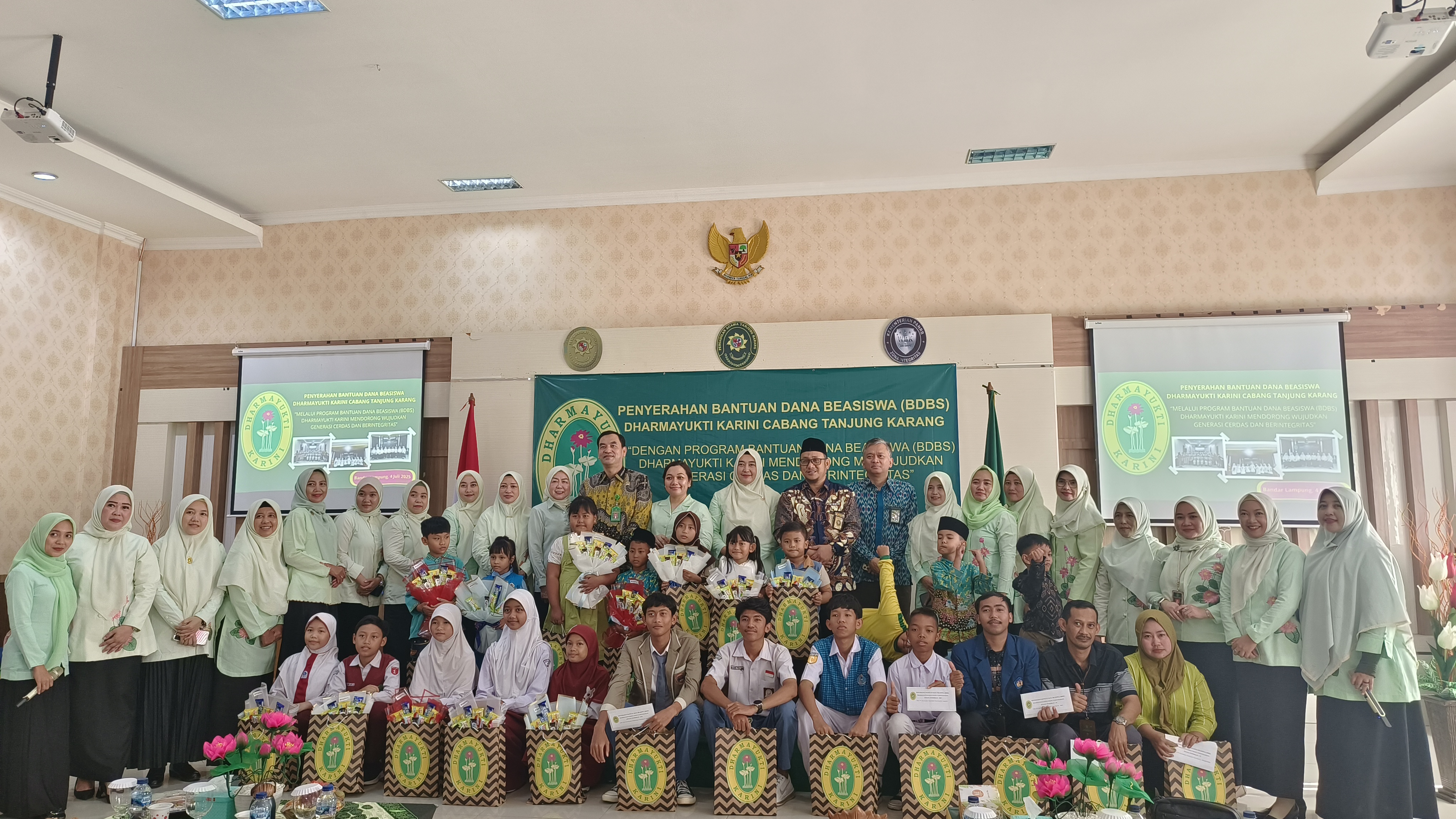 Penyerahan bantuan dana beasiswa (BDBS) dan pertemuan rutin Dharmayukti Karini Cabang Tanjungkarang