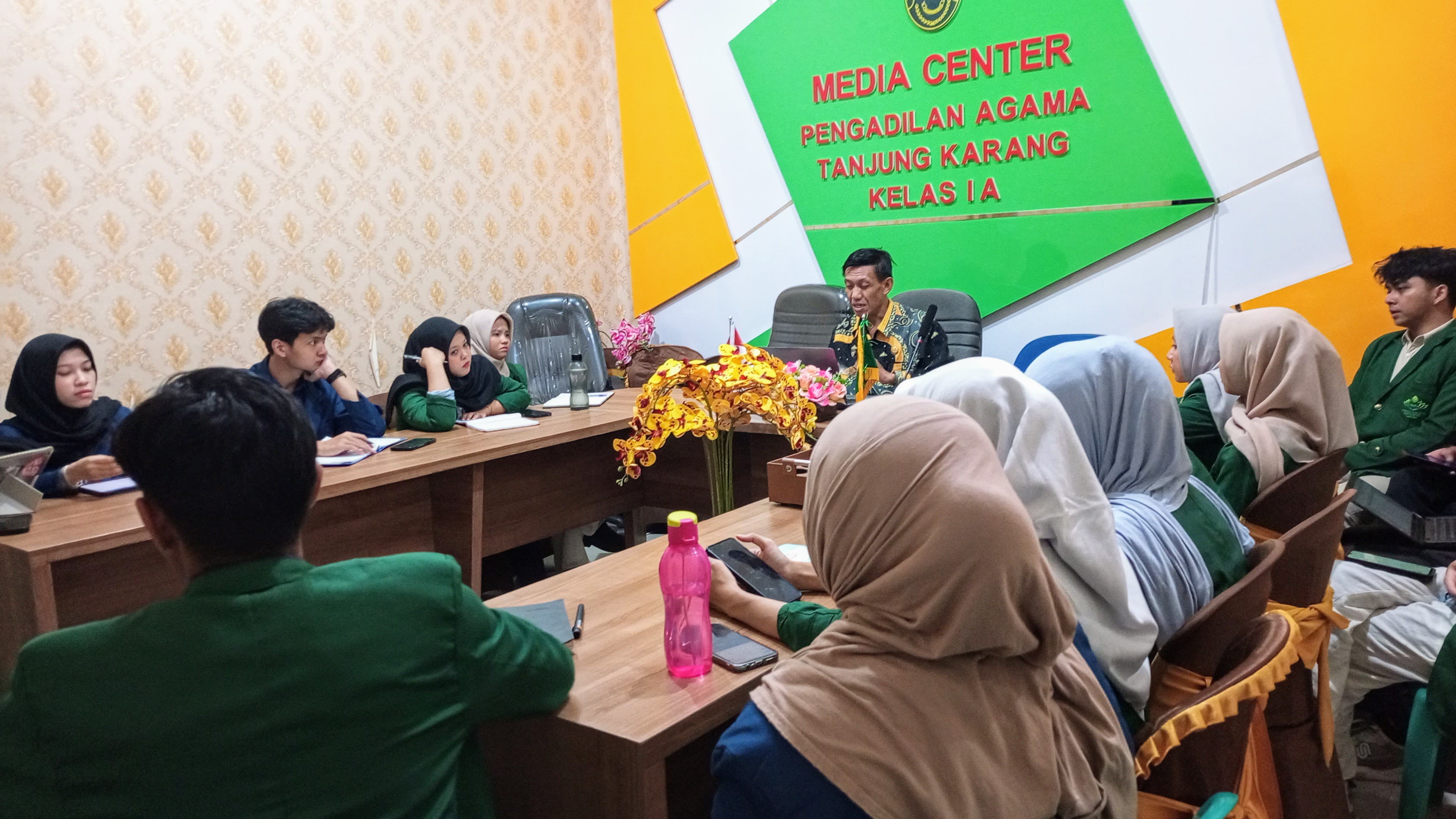PA Tanjungkarang – Panitera Pengadilan Agama Tanjungkarang memberikan pembekalan materi kepada para mahasiswa yang sedang melaksanakan Praktik Kerja Lapangan (PKL) pada Jum’at 4 Juli 2025.