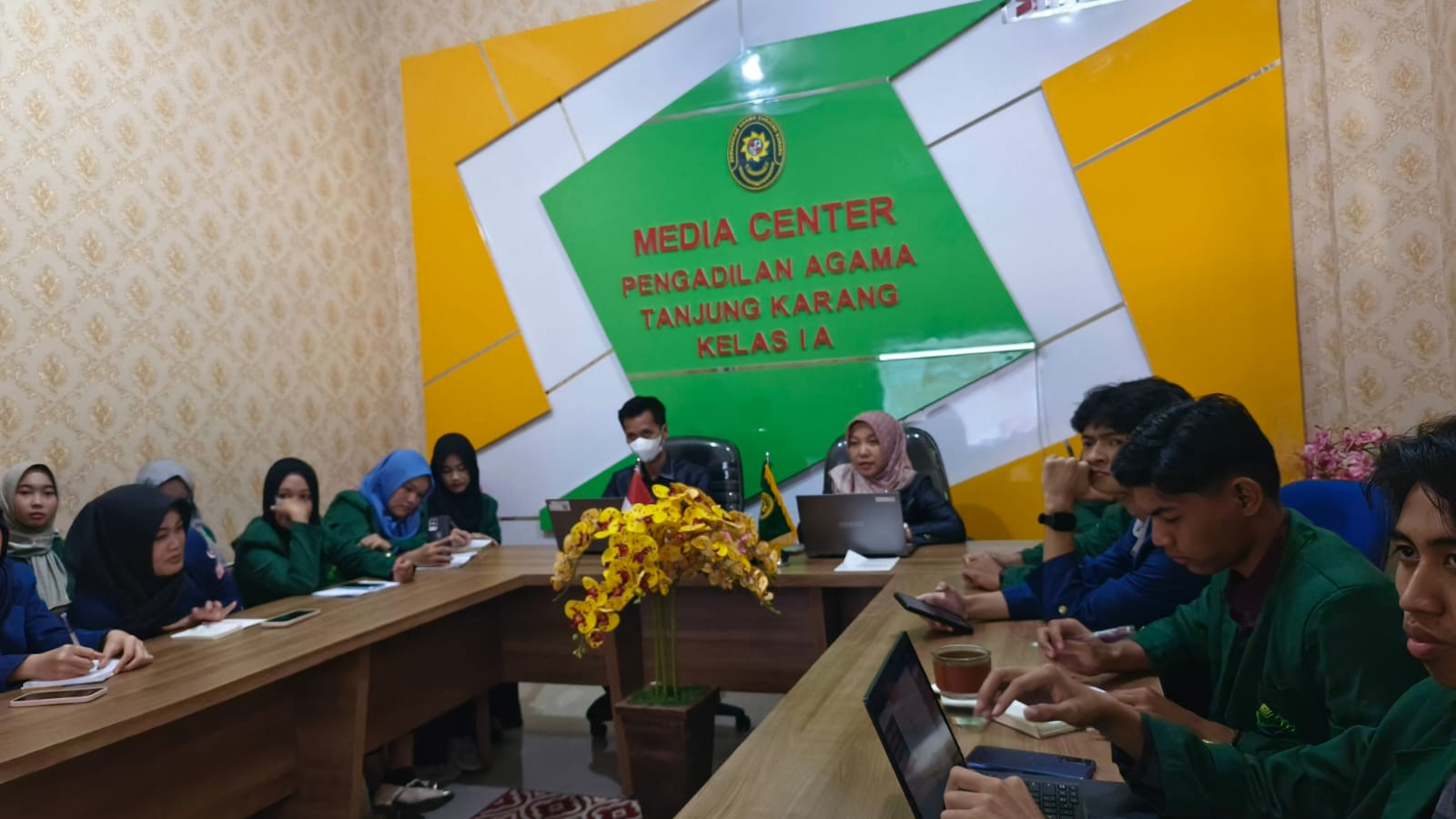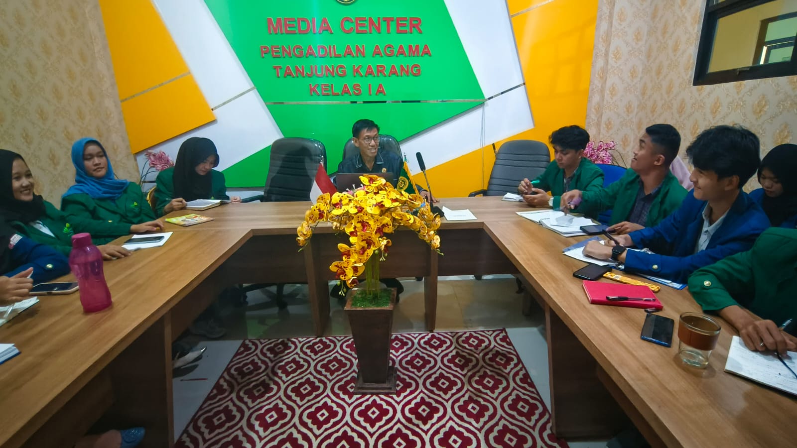 Kasubag Umum dan Keuangan Pengadilan Agama Tanjungkarang, Erlin Faulina, S.T., M.M., didampingi oleh Sekretaris, Medi Efendi, S.Pd., M.H., memberikan materi kepada mahasiswa dan mahasiswi magang dari UIN Raden Intan Lampung di Media Center pada pukul 09.00 WIB.