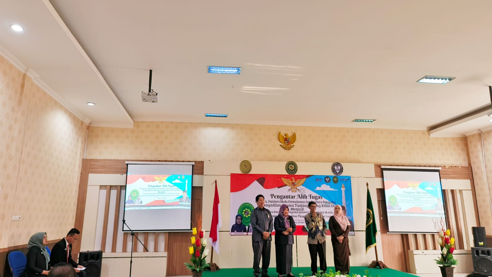 Pengadilan Agama Tanjungkarang melaksanakan Pengantar Alih Tugas Panitera, Muhammad Iqbal, S.Ag., S.H., M.H. dan Panitera Muda Permohonan, Susiana, S.H. . Kegiatan dimulai pukul 14.00 di Aula Cakra PA Tanjungkarang.ย