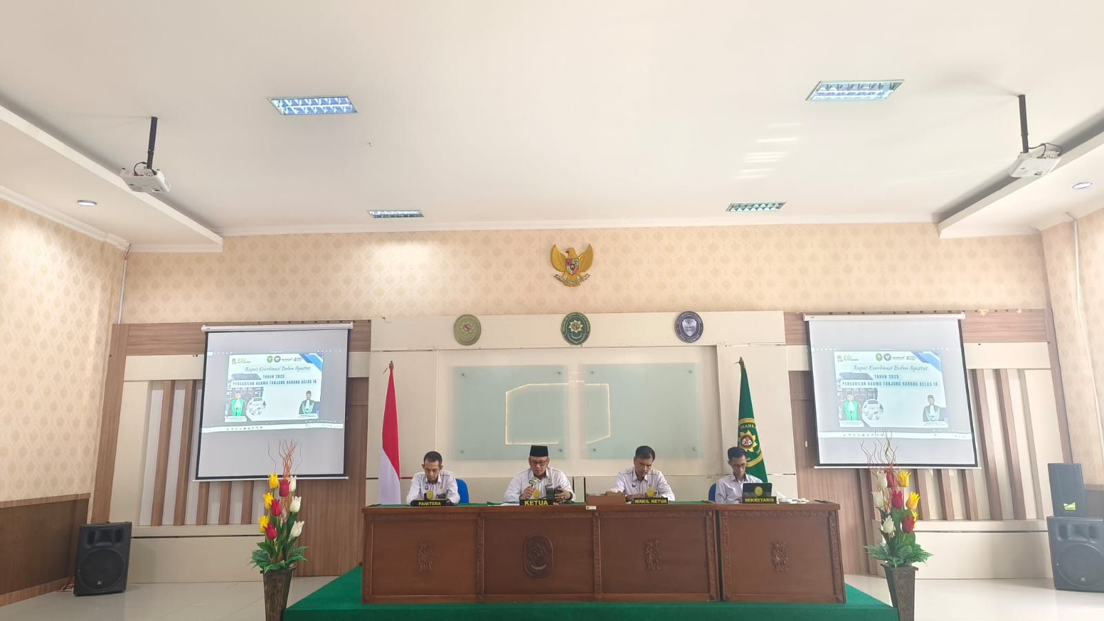 Bertempat di Aula Pengadilan Agama Tanjungkarang Kelas IA, Ketua, Yopie Azbandi Aziz, S.Ag., M.H. menggelar Rapat Koordinasi Bulan Agustus. Moderator pada Rapat kali ini adalah Sekretaris Pengadilan Agama Tanjungkarang,ย Medi Efendi, S.Pd., M.H.. Rapat dibuka dengan Penarahan oleh Ketua PA Tanjungkarang.