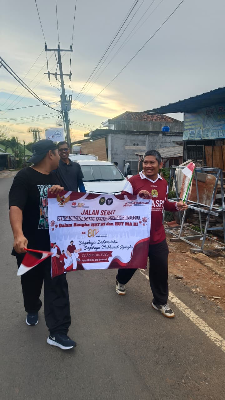 PA Tanjungkarang, 22 Agustus 2025 β Pengadilan Agama (PA) Tanjungkarang menggelar kegiatan Jalan Sehat dalam rangka memperingati Hari Ulang Tahun Kemerdekaan Republik Indonesia (HUT RI) dan Hari Ulang Tahun Mahkamah Agung Republik Indonesia (HUT MA RI) yang ke-80.