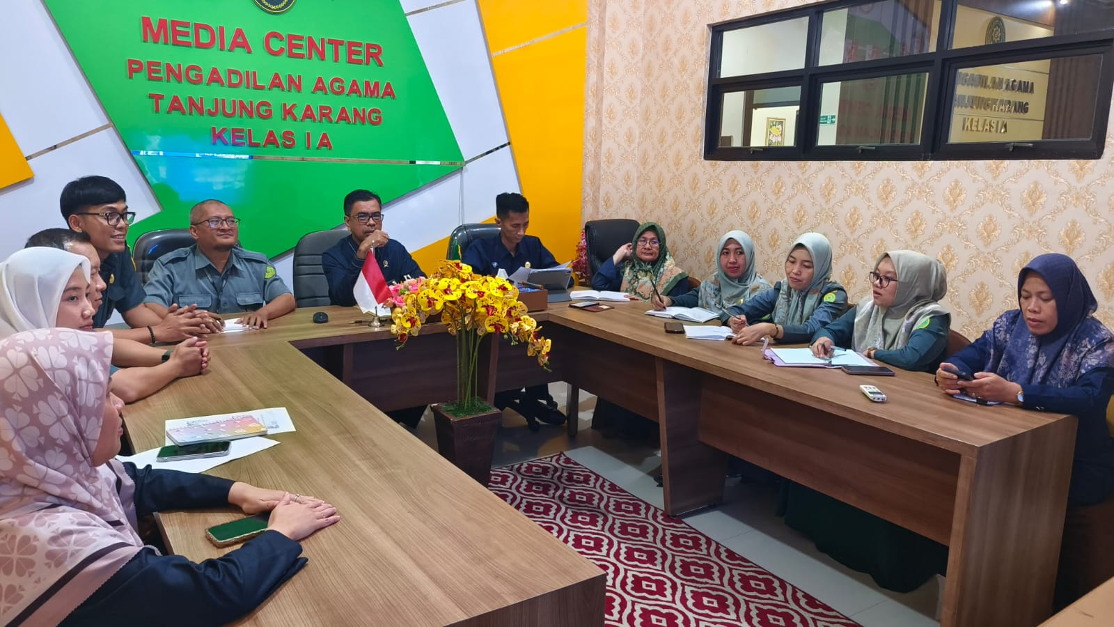 Bertempat di Media Center Pengadilan Agama Tanjungkarang, Wakil Ketua PA Tanjungkarang selaku Ketua Zona Integritas (ZI) melaksanakan rapat monitoring dan evaluasi pembangunan ZI Area 3: Penataan Sistem Manajemen SDM Aparatur usai melaksanakan salat ashar berjamaah.