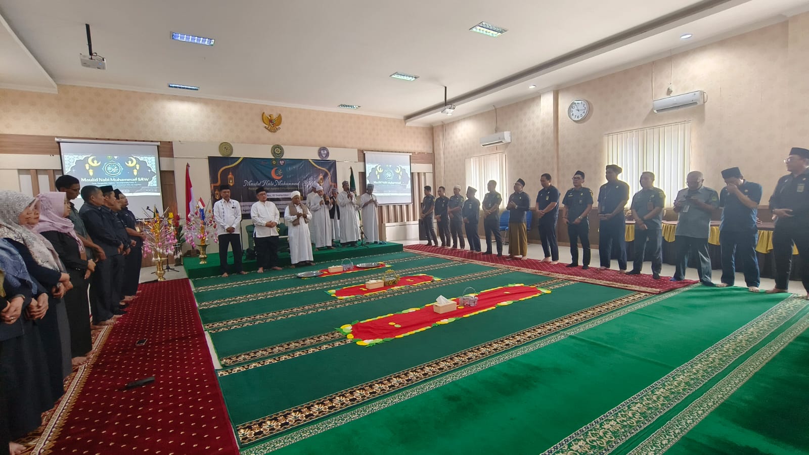 Pengadilan Agama Tanjungkarang menyelenggarakan peringatan Maulid Nabi Muhammad SAW 1447 H yang bertempat di Aula Cakra Pengadilan Agama Tanjungkarang. Acara diawali dengan pembukaan oleh Ketua Pengadilan Agama Tanjungkarang, Yopie Azbandi Aziz, S.Ag., M.H., yang kemudian dilanjutkan dengan pembacaan sholawat bersama sebagai bentuk cinta dan penghormatan kepada Rasulullah SAW. Kegiatan diikuti oleh seluruh Aparatur Pengadilan Agama Tanjungkarang.