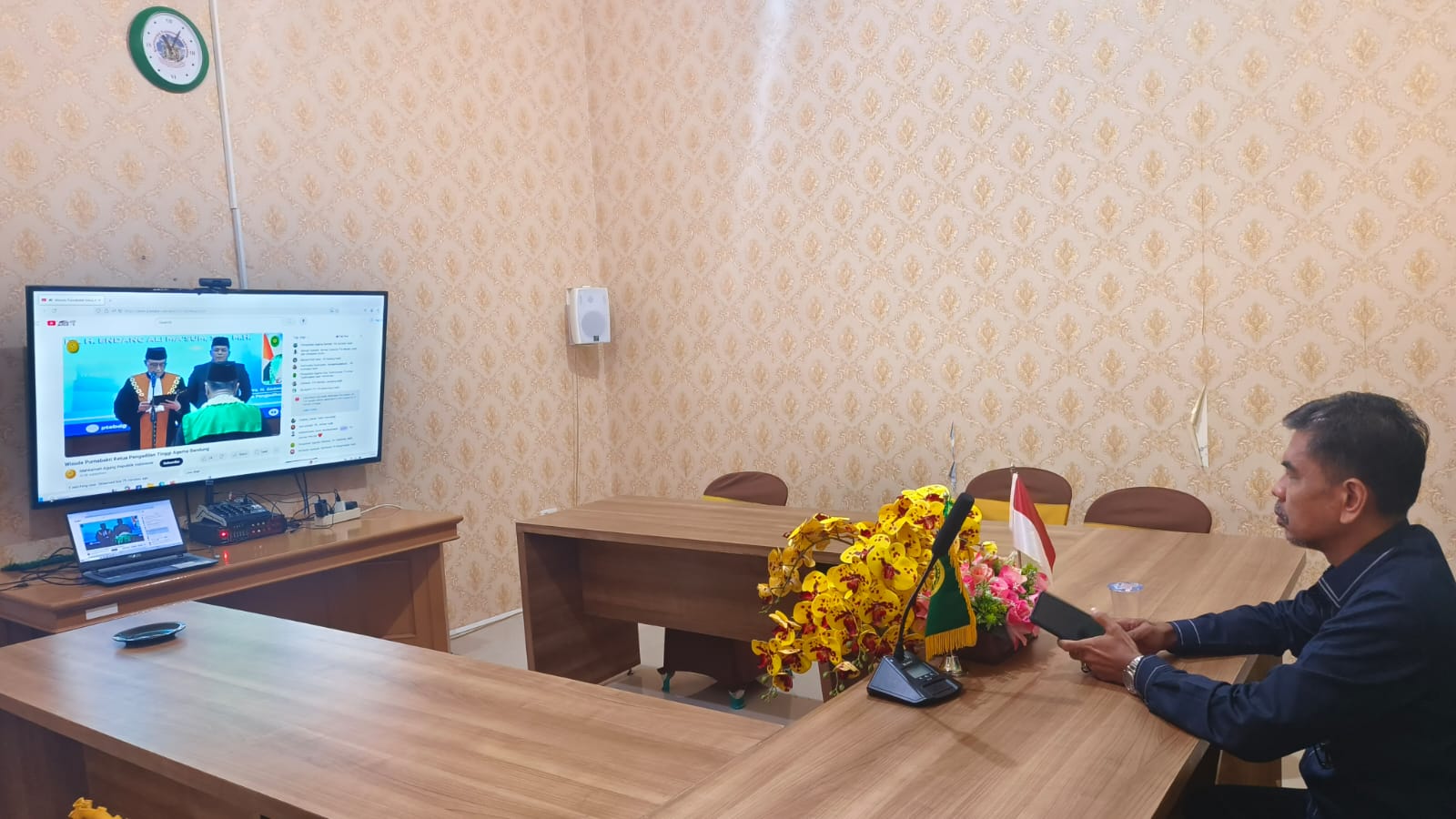 Wakil Ketua Pengadilan Agama Tanjungkarang Kelas IA,ย Elmishbah Ase, SHI, MH. menyaksikan secara daring Wisuda Purnabakti KPTA Bandung pukul 09.00 di Media Center Pengadilan Agama Tanjungkarang.ย Dr. Drs. H. Endang Ali Ma`Sum, S.H., M.H.ย Acara yang penuh khidmat dan haru ini dilaksanakan sebagai bentuk penghormatan atas pengabdian beliau selama bertahun-tahun dalam menegakkan hukum dan memberikan pelayanan terbaik bagi pencari keadilan.