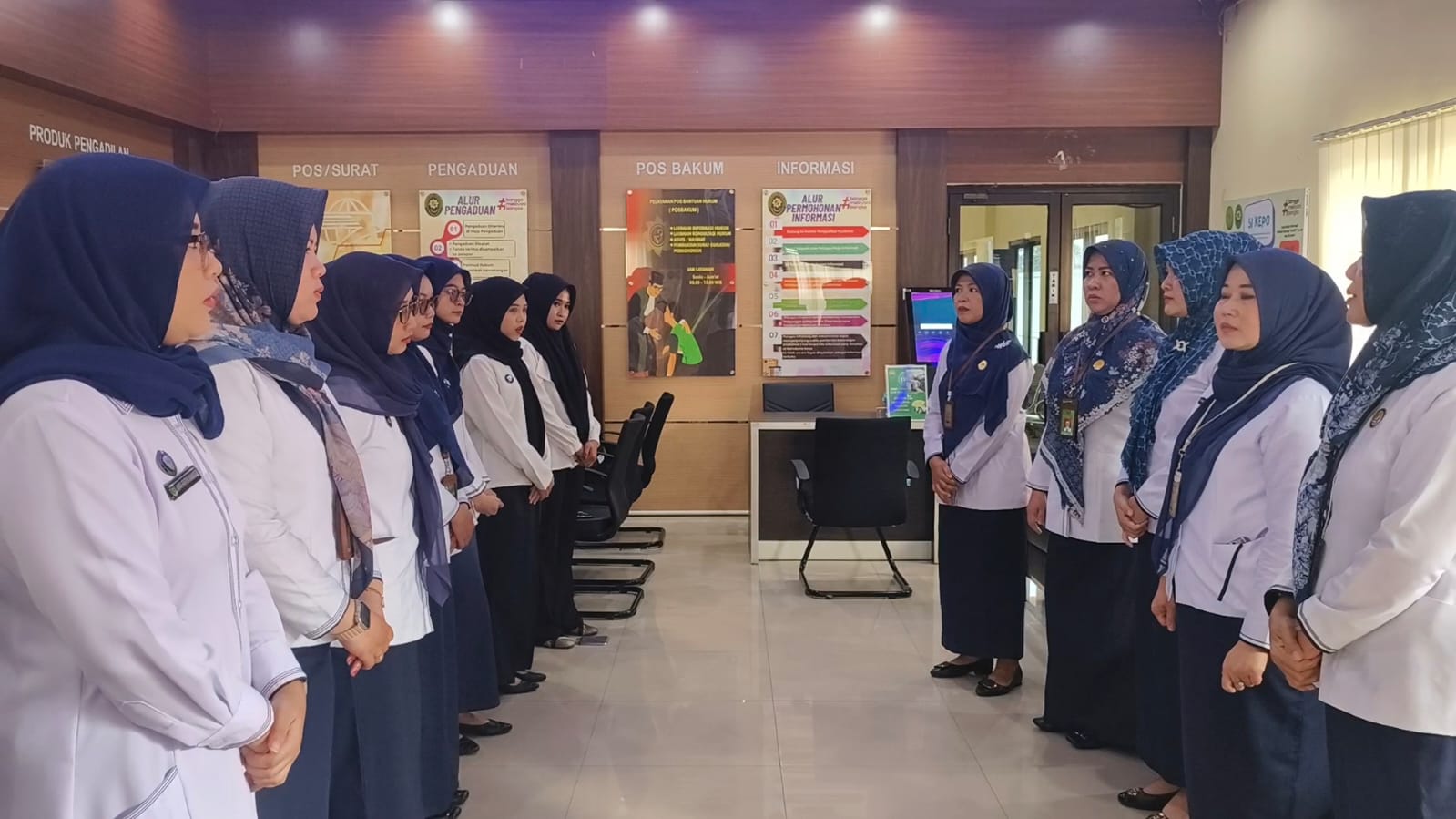 Bertempat di ruang Pengadilan Terpadu Satu Pintu (PTSP) Pengadilan Agama Tanjungkarang, Panitera Muda bersama Manager on Duty (MoD) melaksanakan briefing rutin kepada petugas PTSP dan Posbakum setelah pelaksanaan apel pagi.